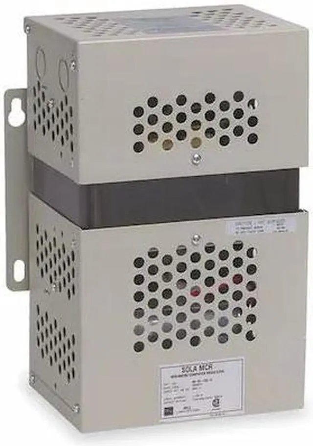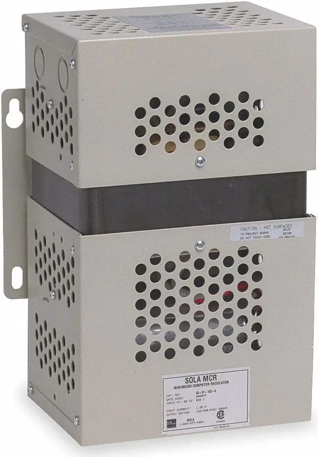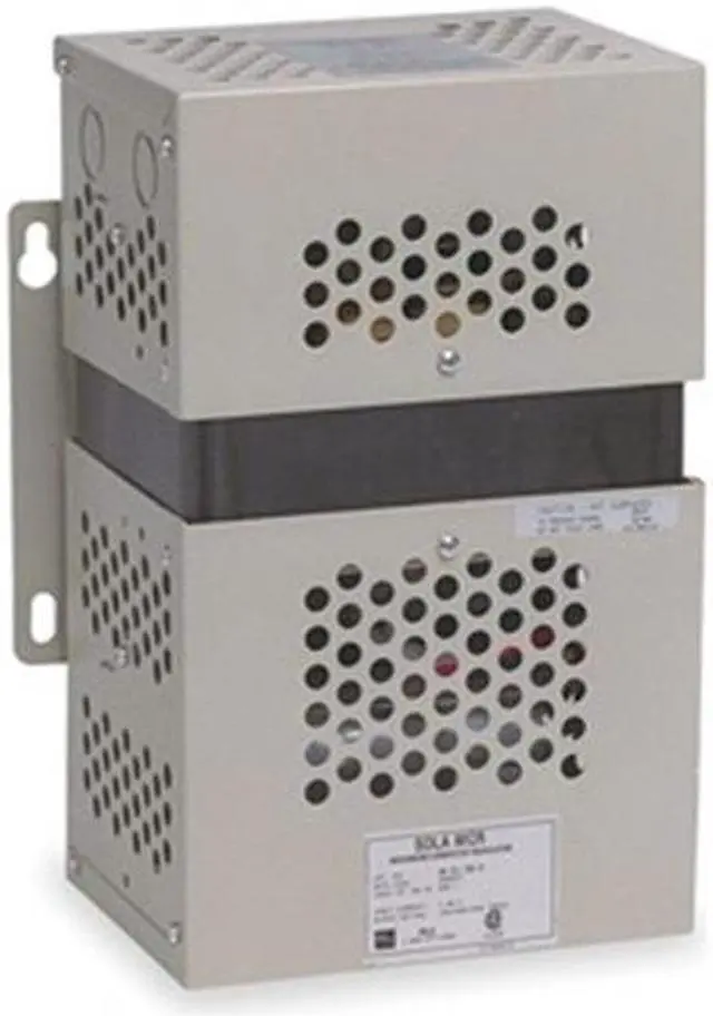 Power Conditioner, Mounting Type Panel Mount, Max. Amps 0.5A @ 480V AC, 1.0A @ 240V AC, 1.2A @ 208V AC, 2.1A @ 120V AC, Input Voltage 120/208/240/480V, Output Voltage 120V, Power Rating 250VA, Output Watts 250 W, Hardwired, Width 6 in, Depth 8 in, Height 10 in, Phase 1, Voltage Regulation Percent +/-3, Cord Length No Cord, Number of Outlets 0, Features Harmonic Filtering, Standards UL 1012/CSA. This item has been restricted from sale in the following state (s): []