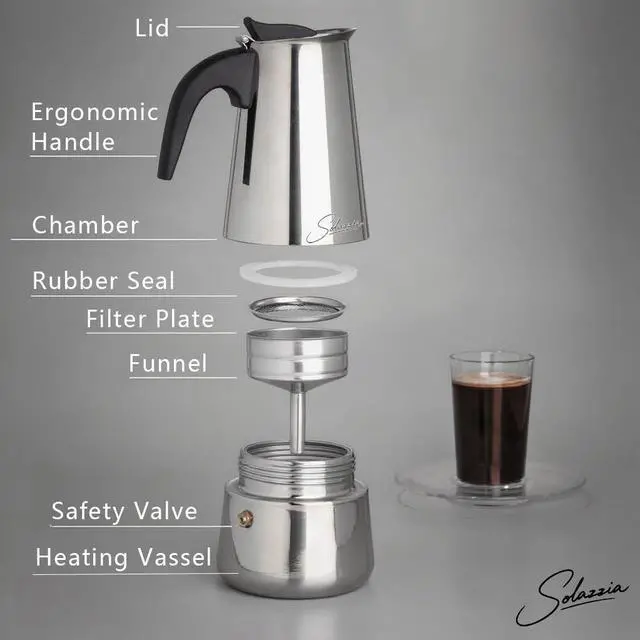Our Solazzia stovetop coffee maker combining elegant design with innovation, ensuring that you can enjoy perfect coffee at every moment.