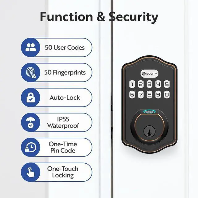Supports up to 50 codes and 50 fingerprints, perfect for large families, rental properties, home offices, or Airbnb.
