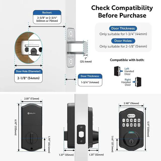 Supports up to 50 codes and 50 fingerprints, perfect for large families, rental properties, home offices, or Airbnb.