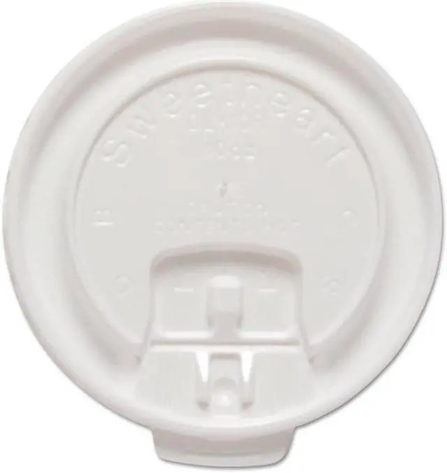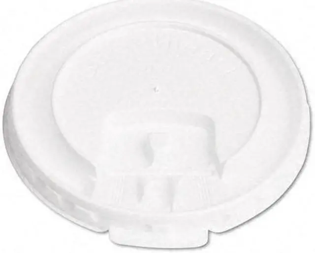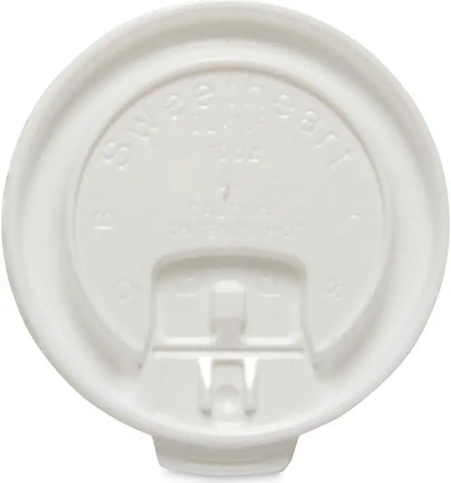 Convenient lid features a scored tab to push back and lock into place. Fits: 10 oz Solo Trophy Foam Hot/Cold Drink Cups; Material(s): Plastic; Color(s): White; Color Family: White.