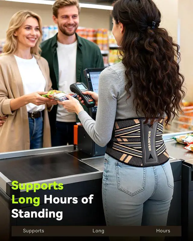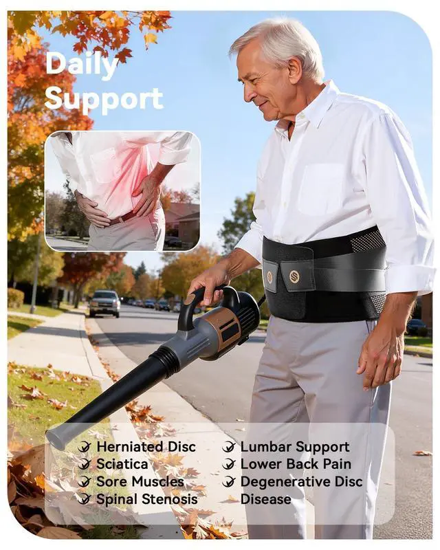 Medical-Grade Back Support for Maximum StabilityWith a medical-grade design, this lower back brace features (1 bionic spine plate+2 memory steel plates+2 resin support bars+ 2 flexible springs), providing precise support for different muscle areas and 360° full coverage. By expanding the pressure distribution area and evenly dispersing force, it stabilizes the spine and relieves back pain. Whether lifting, sitting, driving, exercising, or doing daily tasks, it offers strong lower back support.