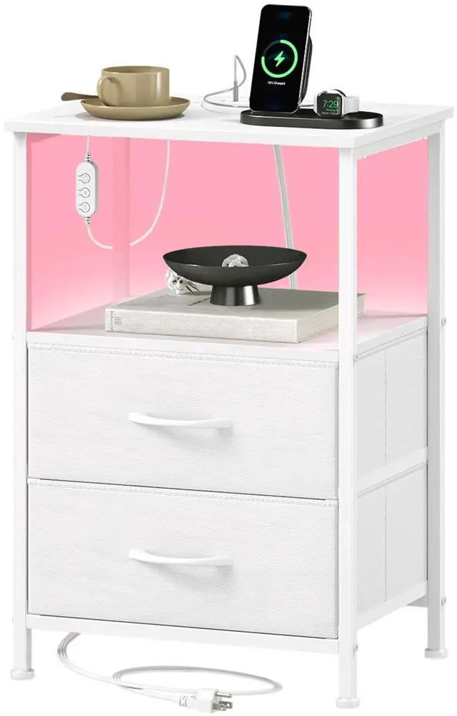 Somdot Nightstand with Charging Station and LED