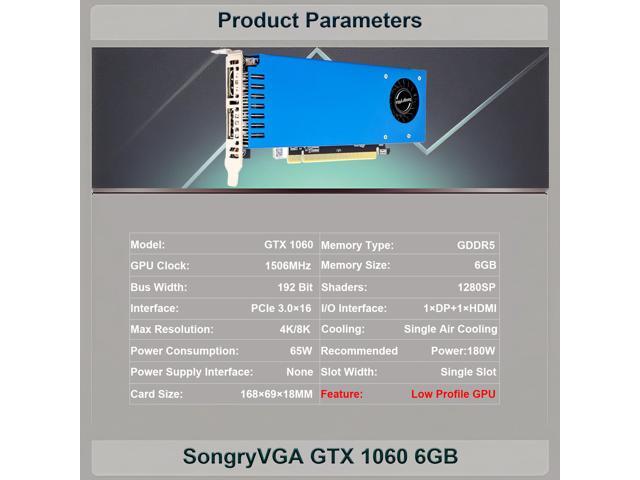 SongryVGA GTX 1060 6GB GDDR5 Low Profile Graphics Card,PCIe 3.0 x16 192-Bit,HDMI & DisplayPort Outputs Compact Design for Gaming Mini PCs & All-in-One Computers