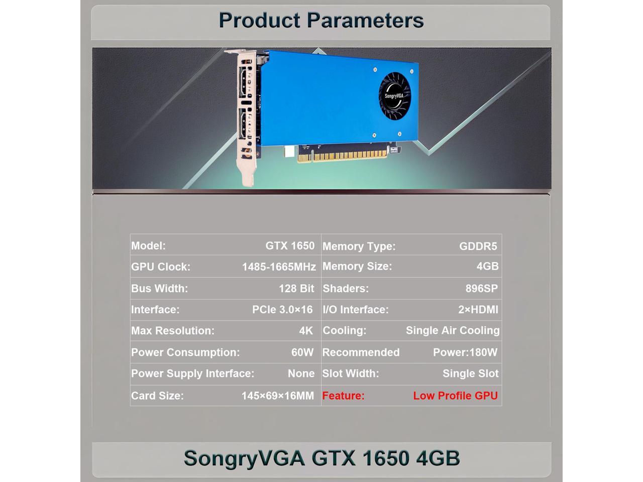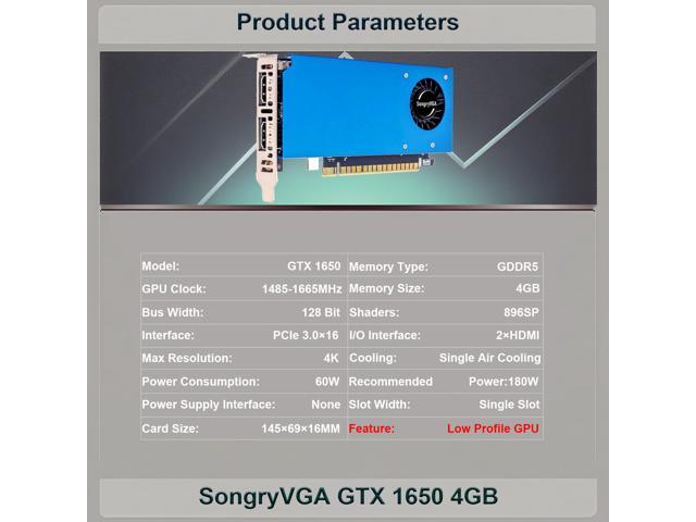 SongryVGA GTX 1650 4GB GDDR5 Low Profile Graphics Card, 128-bit PCIe 3.0, Dual HDMI Output, for Gaming & SFF PCs