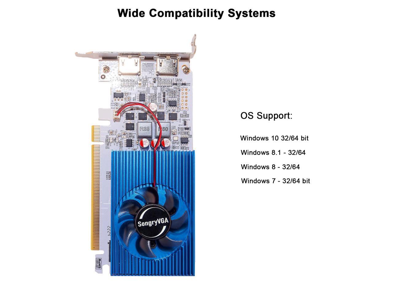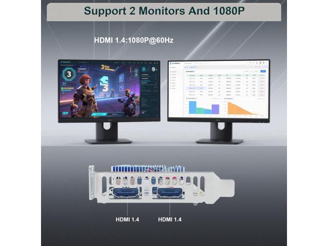 - Dual HDMI Outputs 1080P Featuring 2 HDMI outputs, this card supports dual-monitor setups, making it ideal for office work, presentations, and multitasking.