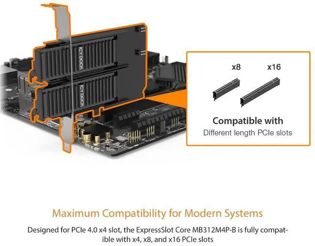 Designed for PCIe 4.0 x8 slot, the ExpressSlot Core MB312M4P-B is fully compatible with x8 and x16 PCIe slots, offering unmatched flexibility for various system architectures.
