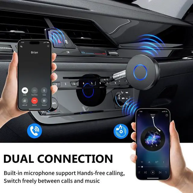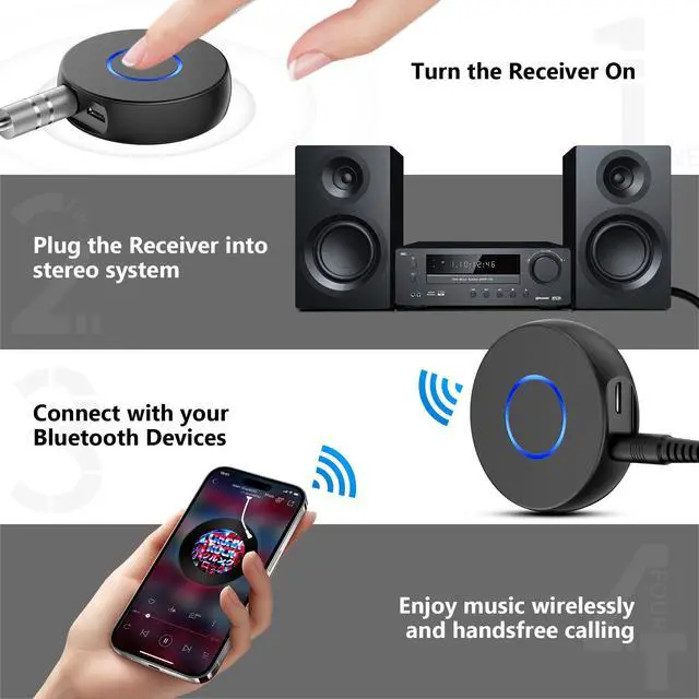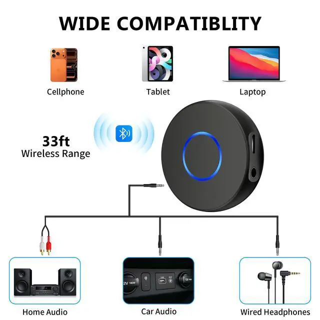 The Bluetooth stereo receiver compatible with all devices with 3.5mm AUX interface. Provide wireless crystal music and clear phone call for home/vehicle audio systems, or wired headphones.