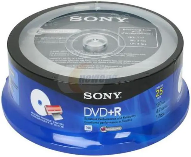 SONY 4.7GB 16X DVD+R Inkjet Printable 25 Packs Spindle Disc Model 25DPR47RSP4