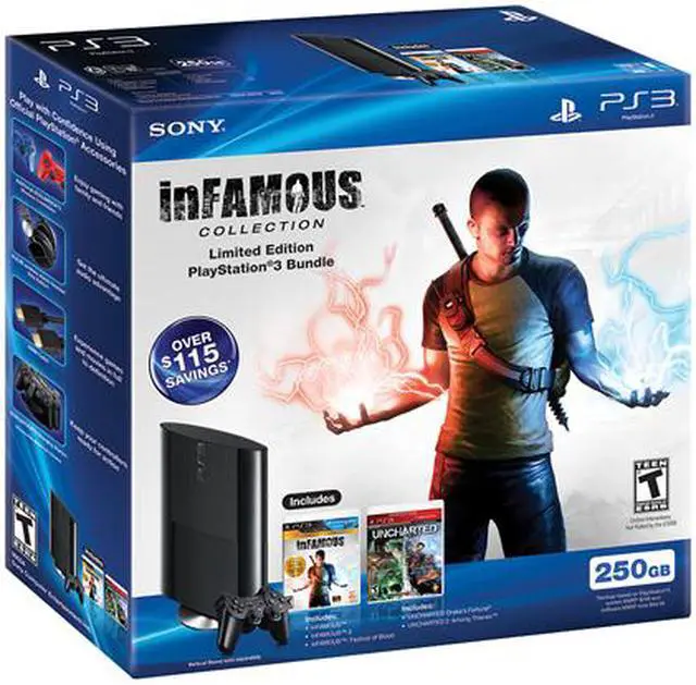 Save over $115 with the PlayStation3 Bundle including a 250GB PS3 System, the Uncharted Dual Pack, and the Infamous Collection.