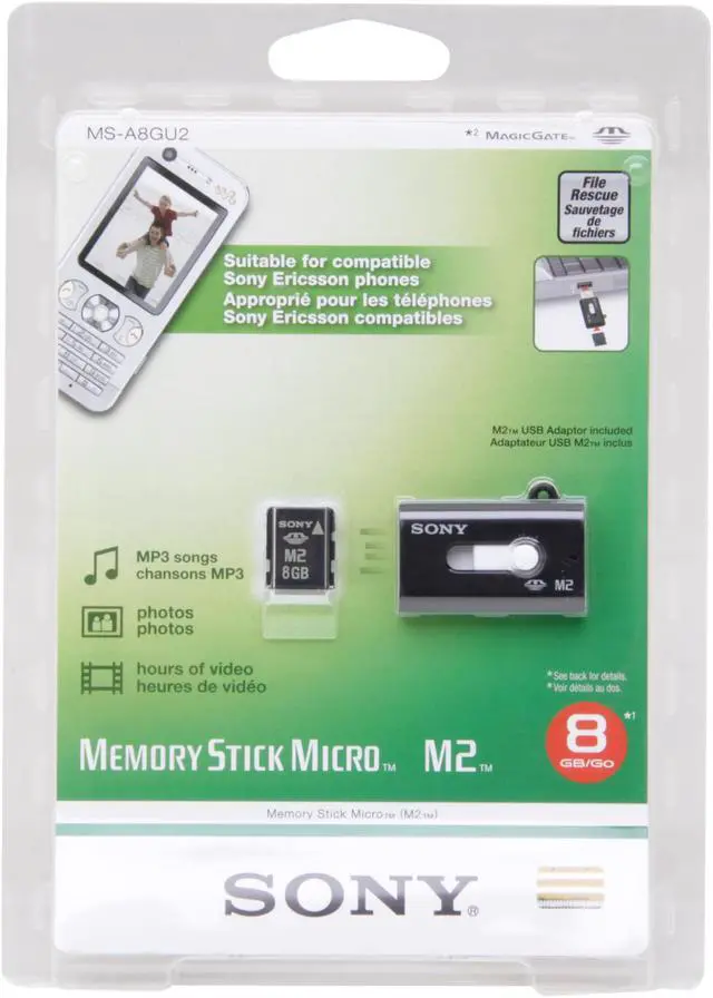 Perfect match with Sony Ericsson mobile phones with M2 slot Delivered with M2 USB Adaptor Store up to 8000 songs, 7400 pictures and 88 hours of video Compatible with copyright protection technology ("MagicGate") Greater durability and reliability : working perfectly in temperatures from -25°C to 85°C