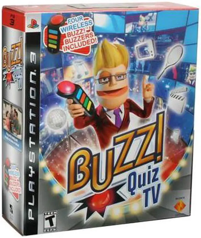 Buzz has brought his game to the Sony PlayStation 3! Bring the ultimate game show to your living room with Buzz! Quiz TV. Challenge your knowledge of trivia with over 5,000 questions from multiple channels including Sports, Lifestyle, Music and Movies. Play against up to three other local players in this ultimate party game, or go "sofa vs. sofa" and complete against other players online.