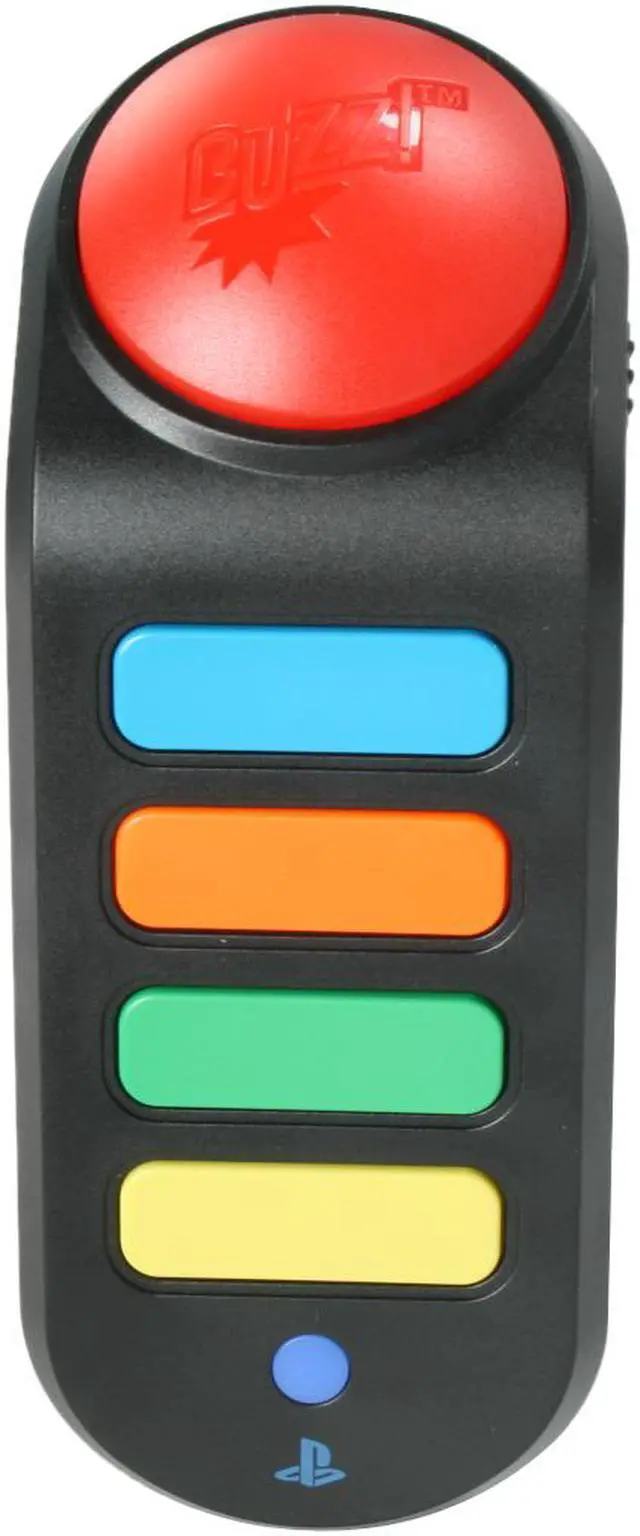 Multiple modes of single and multi-player competition keep you on the edge of your seat. Be the first to buzz in using the light-up buzzer button atop the new wireless Buzz! Buzzer. Then, select your best answer using the colored buttons on the front. Select the correct answer to score points – choose poorly and Buzz won't let you live it down. The four new controllers included with this game are compatible with other versions of Buzz! on both the PS2 and PS3.