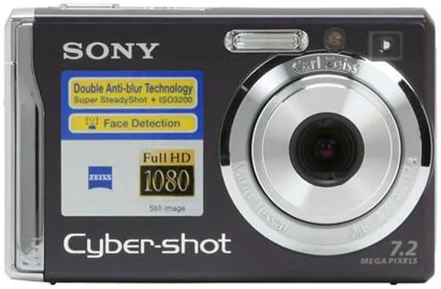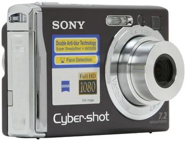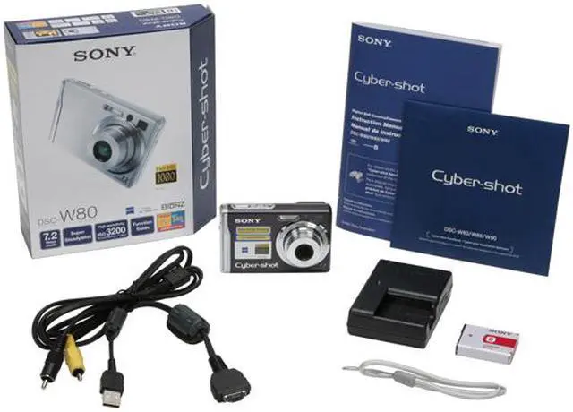 Recreate the moment with the incredibly lifelike pictures you'll take with the silver DSC-W80/B 7.2 Megapixel Cyber-shot digital camera. Your friends will be impressed with its combination of high fashion and advanced performance. With features like Face Detection to bring out the most natural tones in faces and HD output for presentation, sharing pictures becomes an experience to remember. The convenient in-camera retouching and red-eye reduction expands your creativity while the double anti-blur solution allows low-light shooting without flash. And the Carl Zeiss 3x optical zoom lens lets you view the action very closely through the large 2.5" LCD screen.