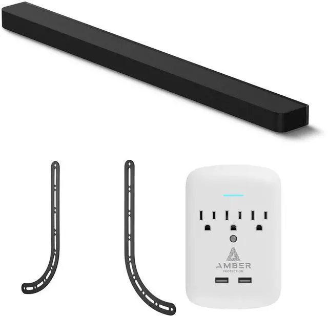 This Bundle Includes (1) Sony Soundbar with a Walts Soundbar Mount and (1) Amber Protection 3-OUTLET-SURGE Surge Protector.