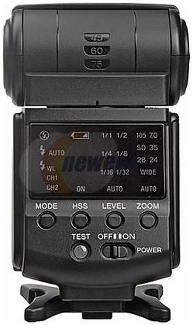 | Features | Auto white balance (signals color temp. to camera) Auto zoom optimized for camera sensor size Retractable wide-angle panel (16mm angle) Wireless operation for quick setup and adjustment Simple controls, test button, power saving mode ADI metering capability, high-speed sync |