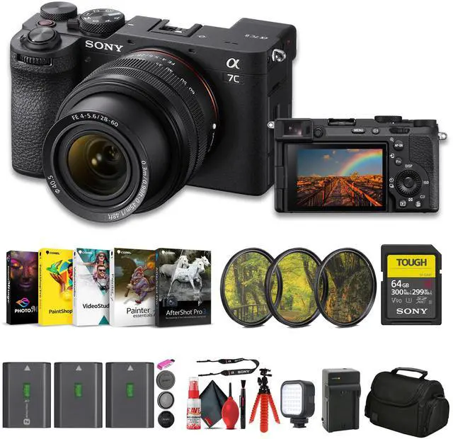 Sony a7C II Mirrorless Camera (Black) - a7C II, the Hybrid Enhanced. Building off the sleek profile and full-frame sensor combination of its first-generation predecessor, the black Sony a7C II offers improved resolution, autofocus, in-body image stabilization, and video capabilities in the same compact, all-day, everyday form factor.