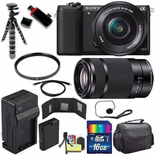 Our Kit Includes: - Sony Alpha A5100 Digital Camera w/ 16-50 Lens Black- Sony E 55- 210mm f/ 4.5 - 6.3 OSS E- Mount Lens (Black) w/ All Manufacturer Accessories- Extra Rechargeable Lithium Ion Replacement Battery- External Rapid Quick, Travel Charger with Car Charger Attachment- 16GB SDHC Class 10 High Speed Memory Card- Ultraviolet UV Filter - Deluxe Padded Carrying Case With Strap- 12-Inch Flexible Tripod with Gripping Rubber Legs- High Speed Gold Plated MINI HDMI Cable 6 feet- USB SDHC Memory Card Reader? - Memory Card Wallet- Lens Cap Keeper- Pack of LCD Screen Protectors + Lens/LCD Maintenance Cleaning Kit + Mini Table Top Tripod