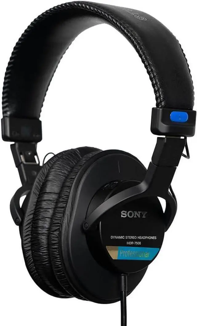 The Sony MDR-7506 is a staple within the recording, film and live arenas. Due to its low impedance and closed ear design, the headphone does an outstanding job of cutting down background noise while providing plenty of volume in the studio or in the field. Additionally, the closed design helps eliminate "headphone bleed" when overdubbing in the studio. The MDR-7506 is an around-the-ear design and is ideal for use with MIDI workstations, camcorders or other equipment with less than powerful headphone amplification. The headphone has a foldable design, making it convenient to store or transport, and its coiled cable allows it to stretch and spring back into place whenever you need a bit more reach.