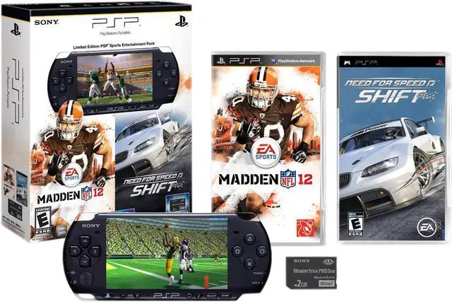 Includes the PSP-3000, Madden 2012, Need for Speed: Shift and a 2GB Memory Stick Duo.