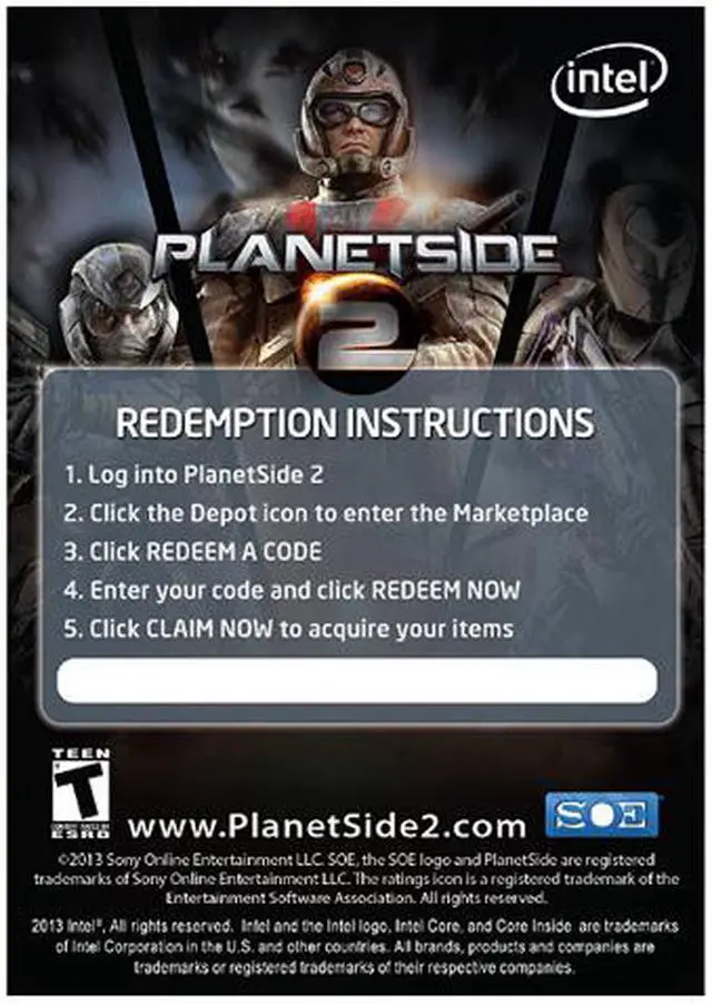 | Features | PlanetSide 2 is an MMOFPS that delivers deeply intense combat by air, ground and infantry on a never before seen scale. Choose your Empire, align with your fellow soldiers and fight for territory dominance. To be successful in this massive warfare requires strategy, teamwork and skill. Declare your allegiance by aligning one of the three available Empires. The Terran Republic is an authoritarian government that leverages military might to maintain strict control over the colonial citizens. The New Conglomerate operates as a loosely organized band of rebels & is prepared to achieve their goals by any means necessary. The Vanu Sovereignty is extremely advanced, employing powerful alien technology on the battlefield. Whatever Empire you covet, be prepared for this persistent online world where the war wages non-stop & the balance of power shifts with every base & territory captured & lost. |