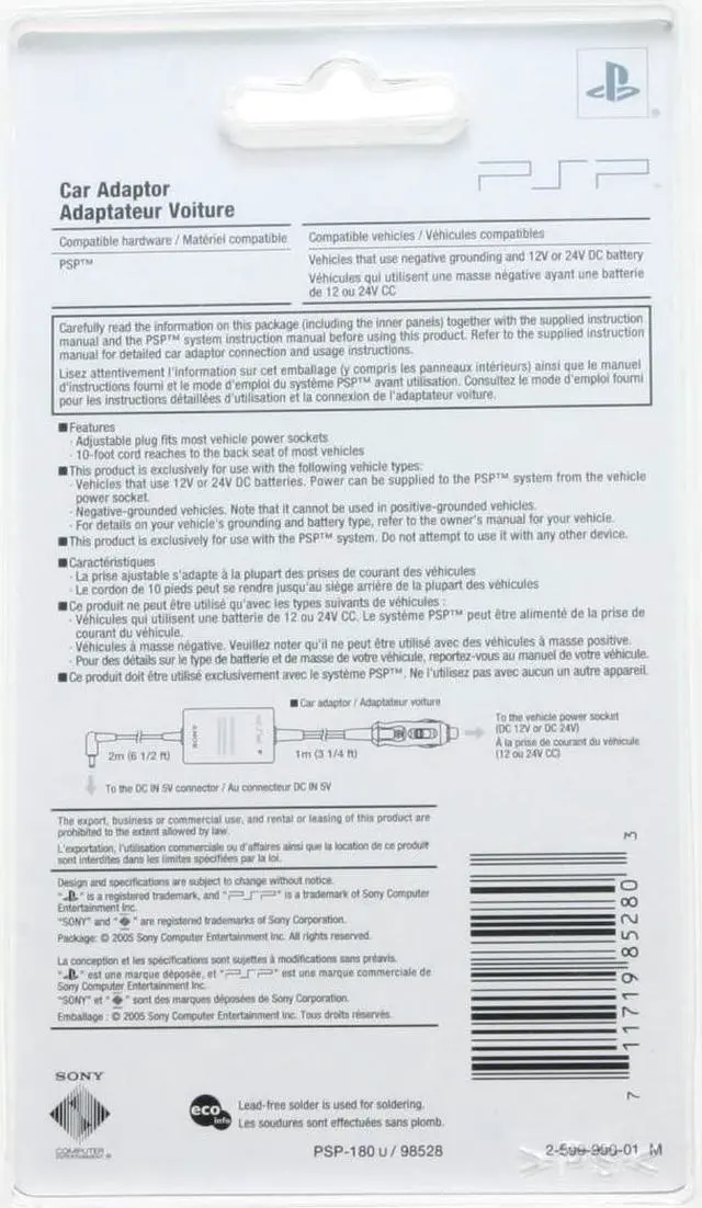 | Features | Take a trip with your PlayStation Portable and the Car Adaptor, and enjoy your entertainment on your terms. |