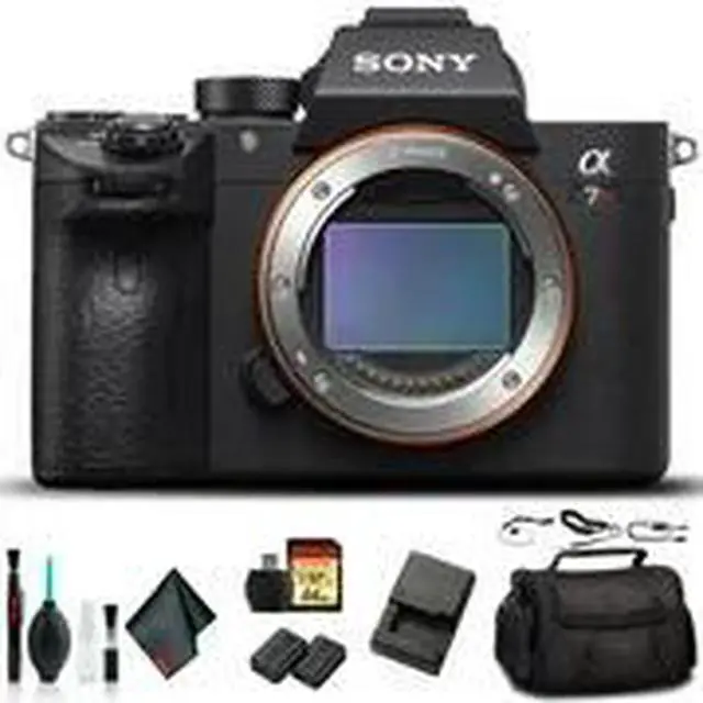 • 1 - Sony Alpha a7R III Mirrorless Digital Camera / 1 - SanDisk 64GB Extreme PRO UHS-I SDXC Memory Card / 1 - Soft Padded Carrying Case / 1 - Deluxe Cleaning Kit / 1 - High Quality Dust Cleaner Blower / 1 - Lens Pen Cleaner / 1 - SD Card USB Reader / 1 - Lens Cap Keeper / 1 - Microfiber Cloth. 42MP Full-Frame Exmor R BSI CMOS Sensor | BIONZ X Image Processor & Front-End LSI. 399-Point AF System & 10 fps Shooting | UHD 4K30p Video with HLG & S-Log3 Gammas. 3.69m-Dot Tru-Finder OLED EVF | 3.0" 1.44m-Dot Tilting Touchscreen LCD. 5-Axis SteadyShot INSIDE Stabilization | ISO 102400 & Pixel Shift Multi Shooting