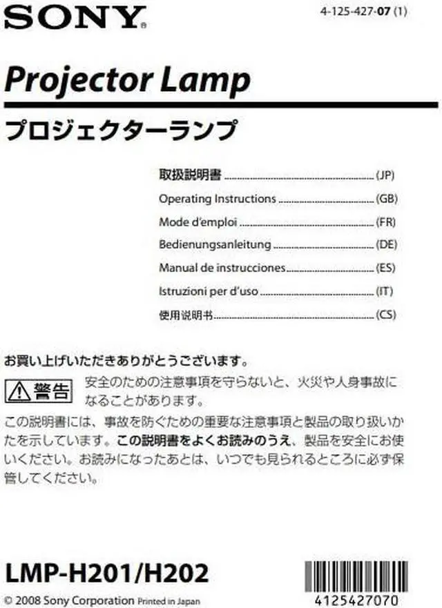 Sony Lamp and Housing - Retail Packaging - May be labeled as the LMP-H201 - see manual image on this listing, they are the same!