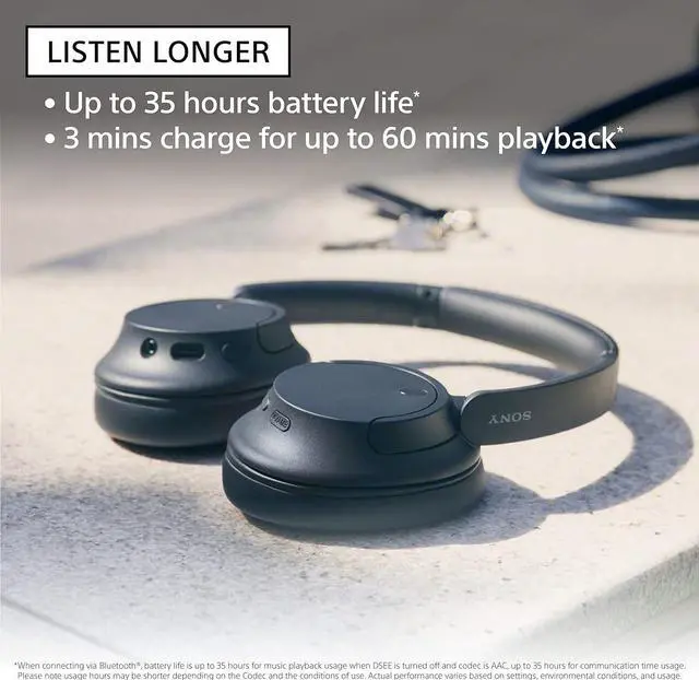 Sony WH-CH720N-BLACK Wireless Headphones - Noise Canceling - Lightweight - Quick Charge (3min Charge for 1hr Play) - Adaptive Sound Control - High Sound Quality - Integrated Processor V1 - Hands-Free Calling - Voice Assistant - Precise Voice Pickup - Multipoint Connection - Multi Pairing - Manual Pairing - Initial Automatic Pairing - Google Fast Pair - Headphones Connect Easy Pairing - Closed Type - Dynamic 30mm Driver - Over Ear - 7Hz-20kHz Frequency Response - 325 Ohm/31 Ohm Impedance - 1.2 m Single Sided Cord - Gold-Plated L-Shaped Stereo Mini Plug - DSEE - Passive Operation - Ambient Sound Mode - Active Headphones - 108dB Sensitivity - USB Charging - 35 Hours Battery Life (NC On) - 40 Hours Battery Life (NC Off) - Bluetooth - 10m Effective Range - 2.4GH z Band Frequency - USB and Connection Cable Included - ( 8.20"W x 2.20"D x 8.40"H ) - (Black) with a 2 Year Coverage by Epic Protect in Addition to the Included Full Manufacturer Warranty. Intended for Residential Use Only