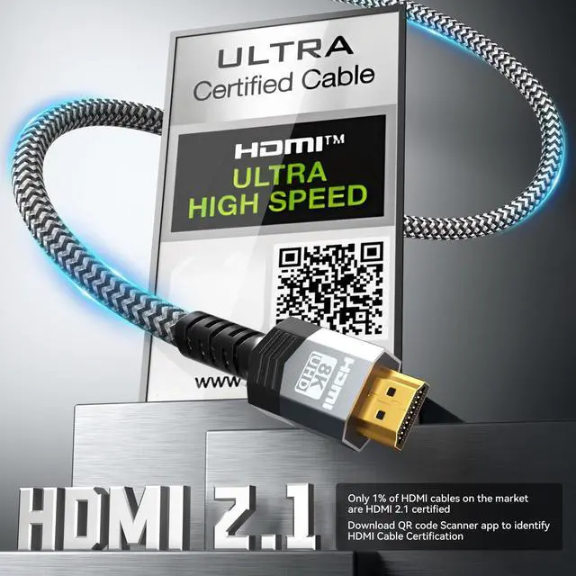 [HDMI 2.1 CERTIFIEDTRUE 48Gbps STABILITY] Have you ever experienced annoying screen flickering during the most exciting parts of a movie? have you lost a crucial game due to input lag and stuttering? Soonsoonic certified Ultra High Speed HDMI 2.1 cable 10 feet delivers the full 48Gbps bandwidth required for 8K@60Hz and 4K@120Hz/144Hz. Built to prevent flicker, signal drop, and random black screens, it ensures stable performance for gaming and home theater setups. Official QR authentication confirms real HDMI 2.1 certification