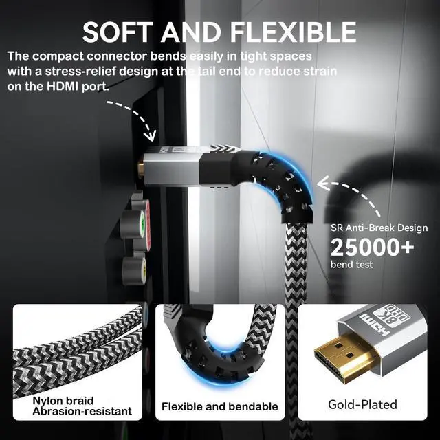 [TRUE 8K VIDEO & LOSSLESS eARC AUDIO]Supports 8K@60Hz and up to 10K resolution with Dynamic HDR and 12-bit color for sharper detail and richer contrast on OLED and QLED TVs. HDMI 2.1 eARC enables high-bitrate Dolby Atmos and DTS:X audio passthrough to AV receivers and soundbars without compression or delay.