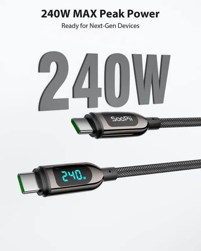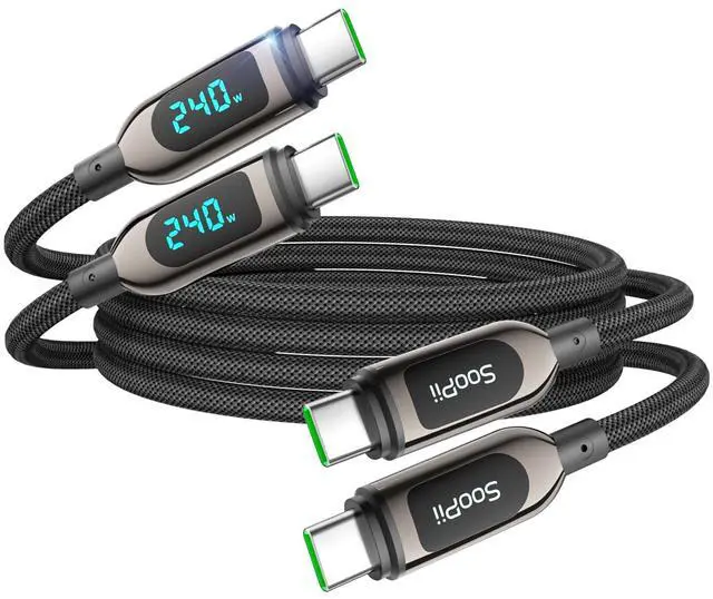 ![Main image of 240W USB C to USB C Cable, [6.6ft,2-Pack] Nylon Braided Fast Charging Cable with LED Display for lPhone 17/17 Pro/16 Plus/15 Pro Max,lPad Air,MacBook Pro,Galaxy S25/S24, Pixel, LG (Black)](https://c1.neweggimages.com/productimage/nb640/C5JMD26030408XA0Z3A.jpg)