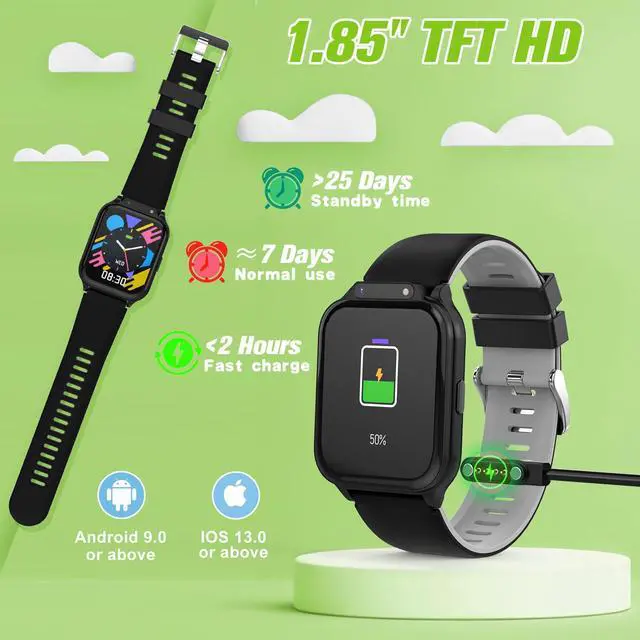 1.85" HD TOUCH SCREEN & 160+ DIALS (Customizable) - our kids smartwatch has 1.85" HD touch screen for better operation. In APP HanFit kids can customize their own dials with favorite pictures, in addition to more than 160 beautiful dials (continuously increasing)!