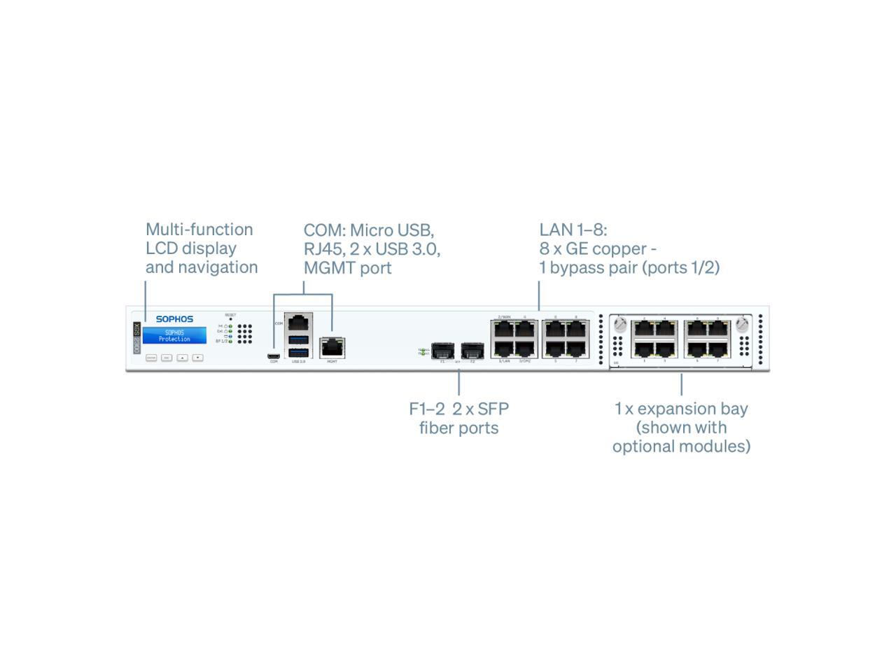 Sophos XGS 2300 Network Security/Firewall Appliance 8 Port - 10/100/1000Base-T - Gigabit Ethernet - 8 x RJ-45 - 3 Total Expansion Slots - 1U - Rack-mountable, Rail-mountable