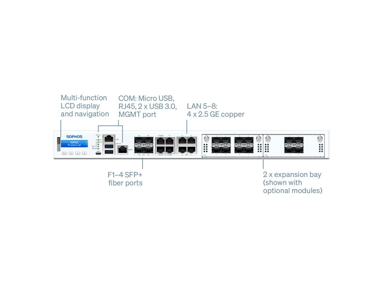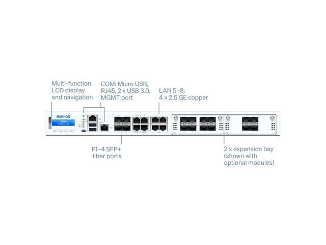 Sophos XGS 4300 Network Security/Firewall Appliance 8 Port - 10/100/1000Base-T, 2.5GBase-T, 10GBase-X - 10 Gigabit Ethernet - 8 x RJ-45 - 6 Total Expansion Slots - 1U - Rack-mountable, Rail-mountable