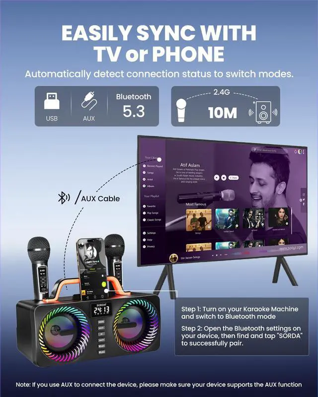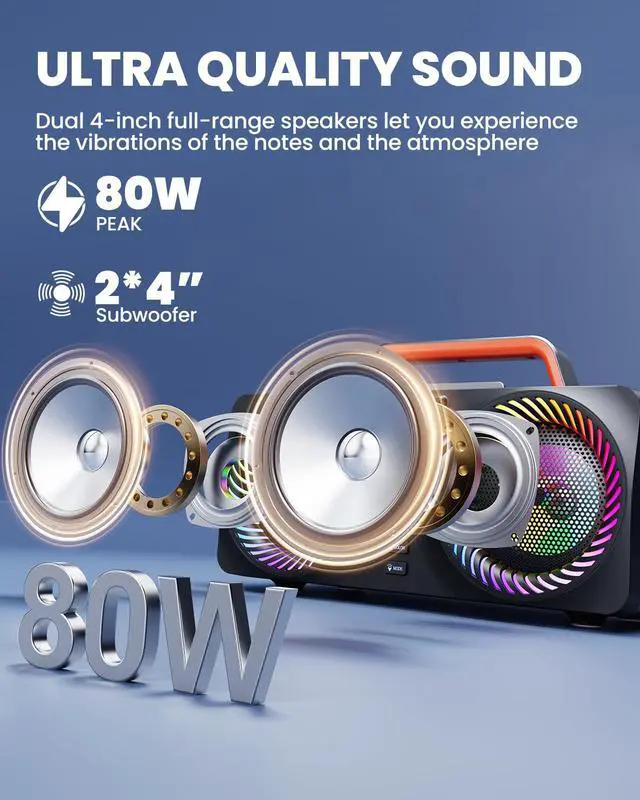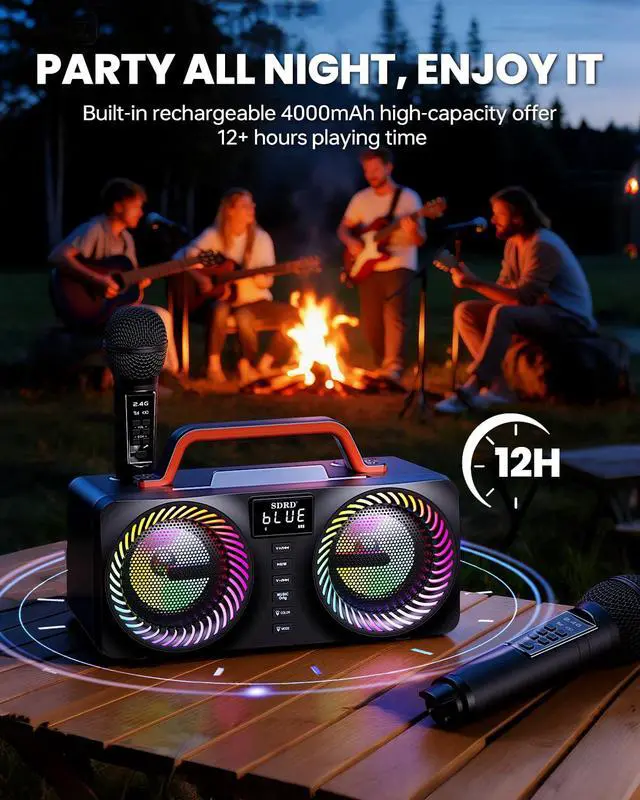 | Special Feature | Bluetooth speaker with 2 wireless microphones, Built-In Handle, Echo Effect, Light Up Speaker, Lightweight, Portable, Rechargeable |