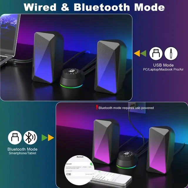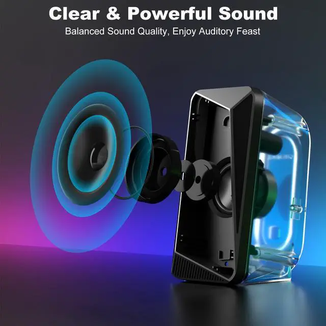 SOULION C30 USB & 3.5mm Aux Wired 2.0 Computer Speakers with Colorful LED Lights