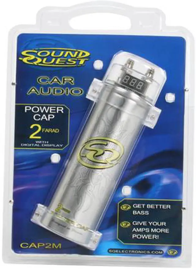 | Features | Keep your music at the optimal performance level every time that you crank it up. Sound Quest has engineered a line of capacitors with ultra low ESR for high current output, high ripple current capabilities, reverse polarity warning, and large 20 volt surge capabilities, which will keep your music clear and crisp at any level. The brushed aluminum body, satin finish terminals, and great styling are sure to compliment any installation for a price that will beat the competition every time! |
