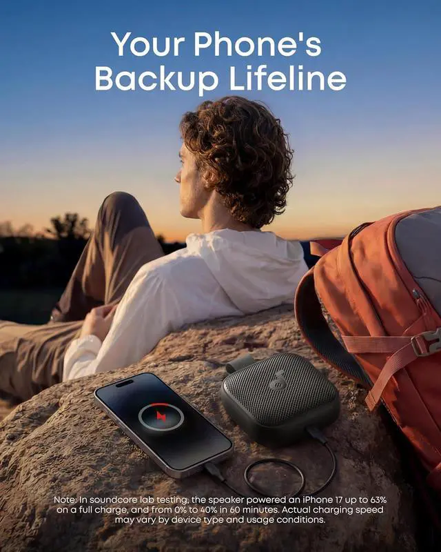 Emergency Charging: Doubles as a portable charger for outdoor adventures. It can charge an iPhone 17 from 0% to 40% in about 1 hour. Keep your music and phone alive in critical moments.