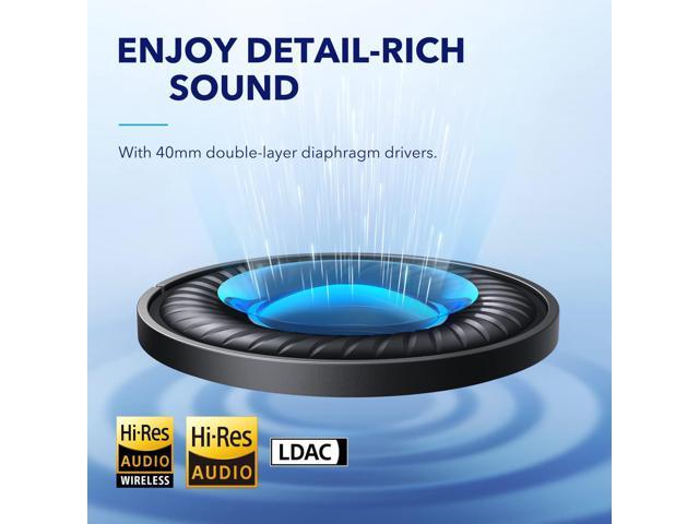 - Hear Every Detail: The 40mm drivers have a pioneering double-layer diaphragm made from silk and ceramic materials to produce sound with intense bass and crisp treble. Space Q45 noise cancelling headphones also support LDAC for Hi-Res Audio Wireless sound.