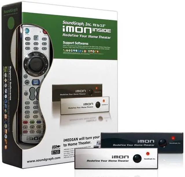| Features | iMON Inside is internal type IR receiver which is fit to the 3.5" disk drive bay of PC. The difference of internal type IR receiver is that internal IR receiver supports Power On by remote controller. In order to achieve this useful feature, we provide the ATX standby power adaptor which provides the standby power to the internal IR receiver. Power on by remote controller Designed to be installed to 3.5" disk drive bay Connection Type: External USB Cable (0.8M), Extension Internal USB Cable (0.08M), M/B power cable, ATX standby power adaptor |