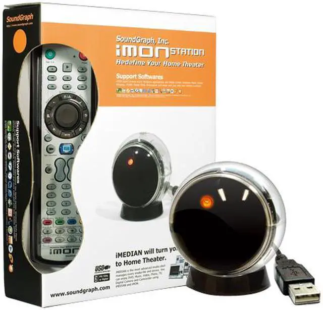 | Features | iMON Station is the first production of iMON series, and it has been sold more than 100,000 units around the world. It can be put on the dest or moitor and could be connected through USB port easily. The red LED inside the IR sensor cover indicates the IR signal reception by blinking. iMON Station has the same design of old one, but for installation convenience, its USB cable is shorten to be easily connected to the USB port on front panel of PC case. Enclosed extension cable covers the normal usage of USB cable connection to normal rear USB port. Portable USB Connection Remarkable Design High IR sensitivity Connection Type: External USB Cable (0.15M), Extension Cable (1.5M) |