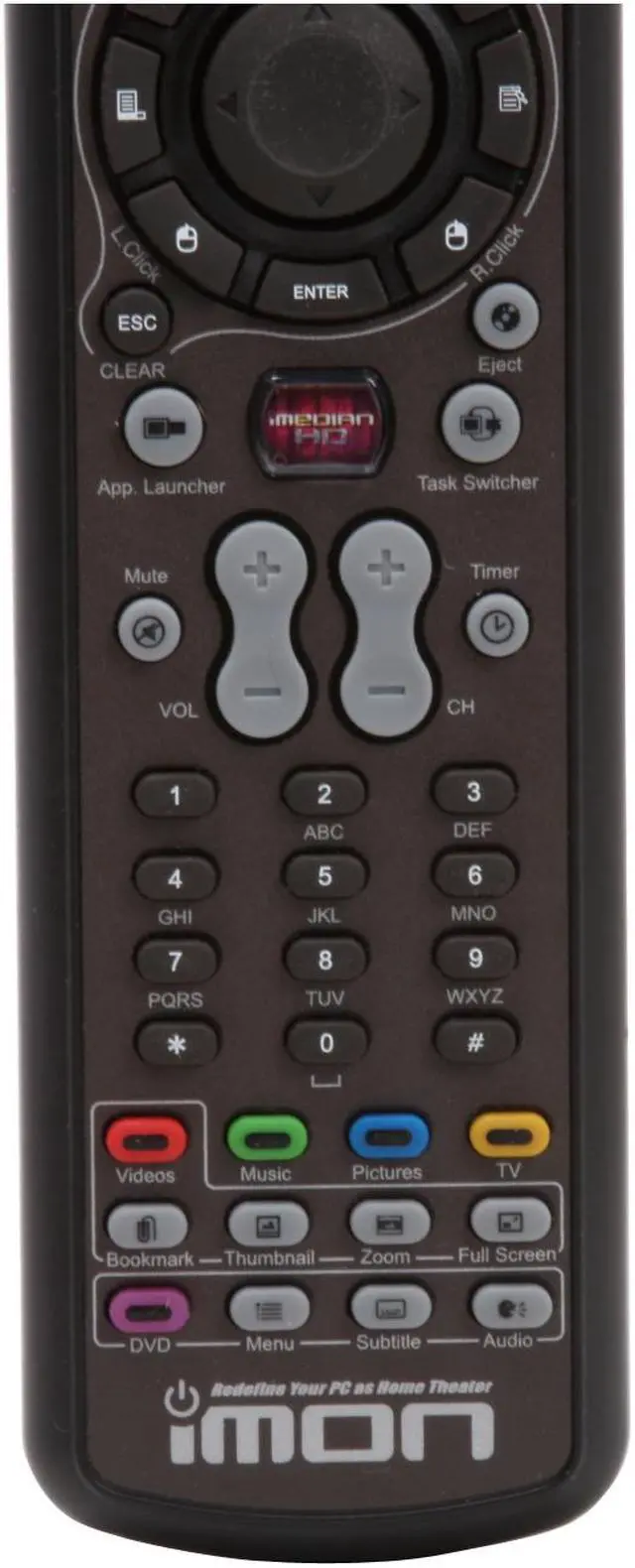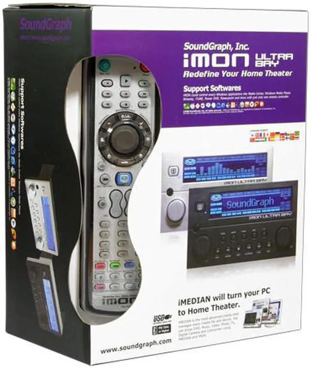 | Features | Remote PC Power On by iMON PAD Remote Controller & MCE Remote Controller Full Compatibility with MCE Remote Controller and MCE Keyboard Support variable font types including 2 Byte characters as like Korean, Japanese and Chinese Designed to be fit to 5.25" disk drive bay Navigation, Volume Control by Dual Knob System Shortcut, Playback Control by Media Buttons Scheduled Power On Control Signal: 38KHz Infra-Red frequency Interface: USB 1.1 or higher (Internal/External USB connection) Certification: CE, FCC, MIC, RoHS, WEEE Driver Certification: WHQL (Windows Hardware Quality Lab) Approved OS: Windows 98, ME, 2000, XP and VISTA |