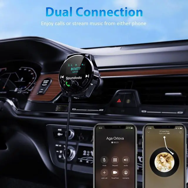 When the first device is connected, press and hold the multi button for 5 seconds again to enter the bluetooth pairing mode,find and connect the Bluetooth device "B06T7" at the second mobilephone, then B06T7 can connects to two mobile phones.