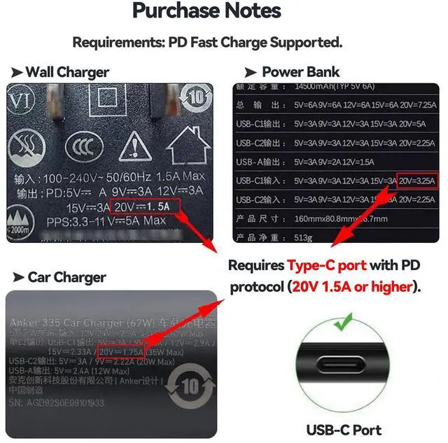- Not Compatible with: Apple's 20.3V PD chargers and Anker 65W Nano II PD charger. These chargers may cause damage to the power cord's internal components if used.