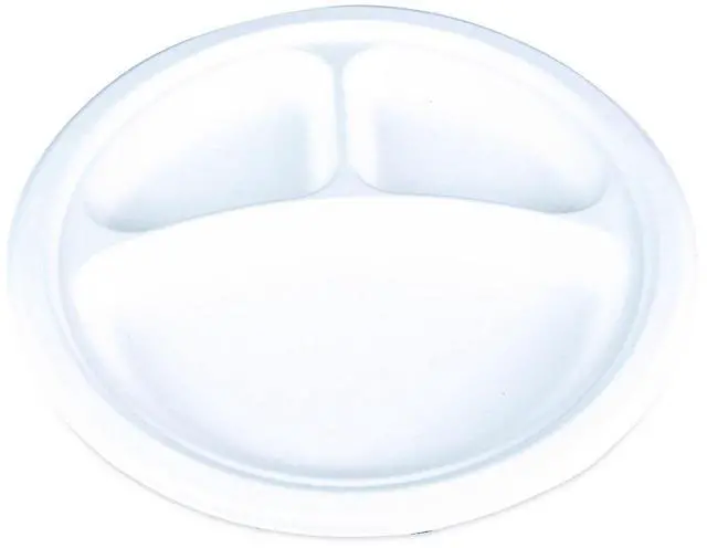 ChampWare Molded Fiber Tableware 3-Compartment Plate 10" dia White 125/Sleeve 4 Sleeves/Carton 18163WPF