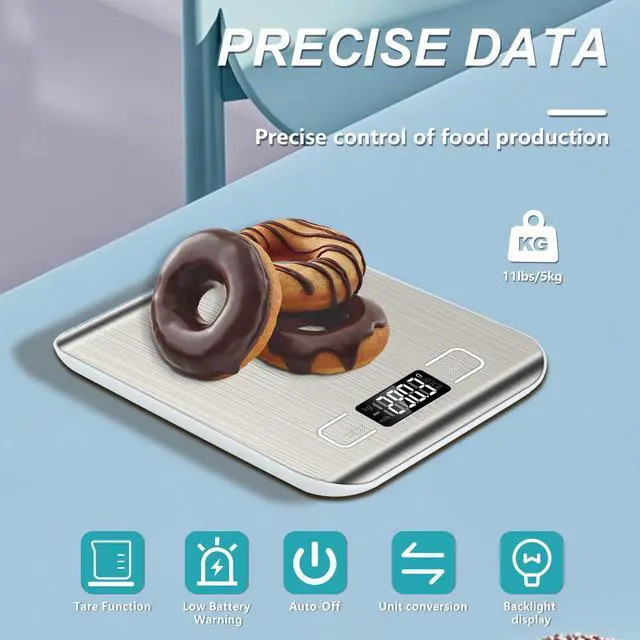 - [LIGHT UP DIM VISION]--The digital kitchen scale with LCD display can be used by both the elderly and children. The large screen reads the values accurately, displays the numbers clearly, and does not hurt the eyes. It can provide you with night vision mode in dark environments, providing you with Visual escort. For those who love cooking and baking, this is a food weight scale you cant put down.