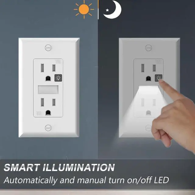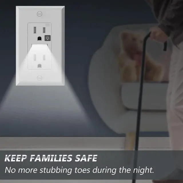 With Light sensing technology, the SOZULAMP LED night light wall outlets are the perfect addition to your home lighting. Don't worry about can't find your outlet at night,don't have to endure the glare of lights when you get up at night,the night light wall outlet will light up your night.Your home will be safer and enhanced with the addition of the SOZULAMP Illuminated wall outlets.