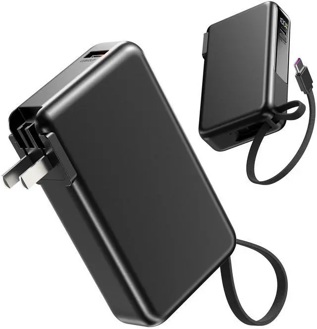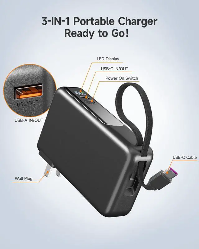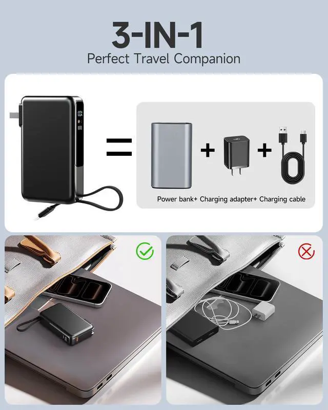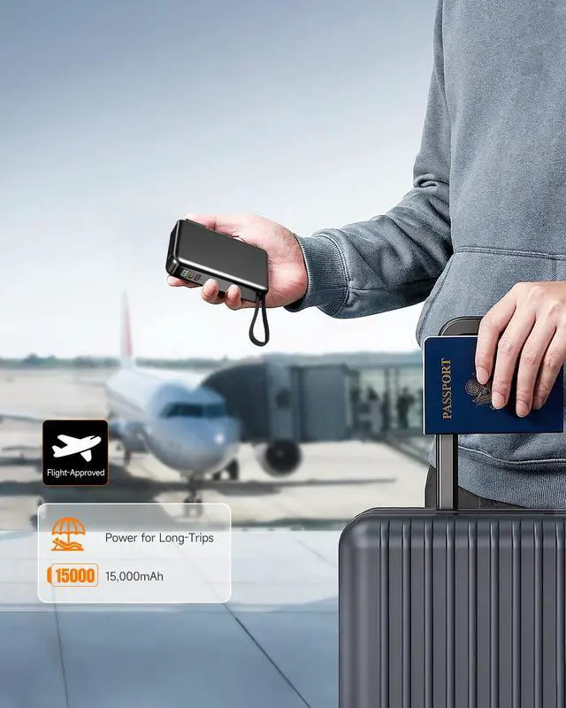 15000mAh Portable Charger, 35W Fast Charging Power Bank Built-in Cables & Wall Plug,Airline-approved Travel Essentials Charging Bank Equipped with LED Display for iPhone 17/16/15/14 Series,iPad