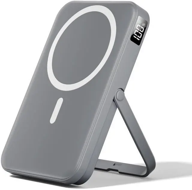 Magnetic Power Bank 10000mAh with for MagSafe Charging, PD 22.5W Fast Charge, Foldable Stand, Dual USB Output, LED Display (Space Gray)